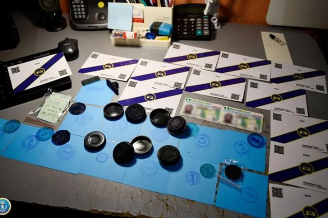 ასევე, ამოღებულია ყალბი დოკუმენტების დასამზადებლად გამოყენებული კომპიუტერული ტექნიკა და სახელმწიფო უწყებების, კერძო ორგანიზაციებისა და საბანკო დაწესებულების ყალბი ბეჭდები.