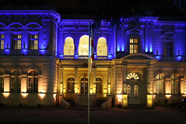 საქართველოს პრეზიდენტის სასახლე უკრაინის დროშის ფერებში განათდა